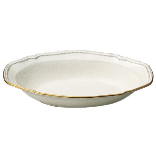 ボウル 24.5cm オーバルボウル ステッチ 陶器 美濃焼 アイボリー ※2個以上から注文可能(販売価格は1個単位の価格)