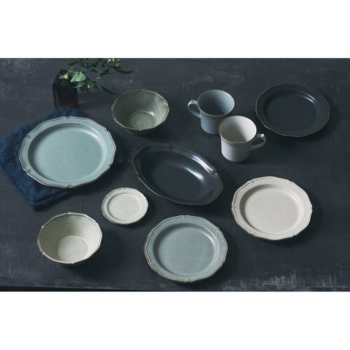 深みのあるくすみカラーにクラシカルなデザインが上品なオーバルボウルです。 カレーや、オムライス、パスタなどの盛り付けにも便利です。 |