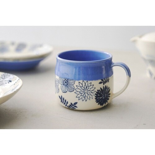 マグカップ 400ml ガーデン 陶器 青 ※2個以上から注文可能(販売価格は1個単位の価格)