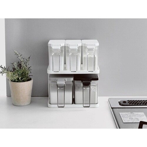 パッキンと、カチッと閉まるロックでしっかり密閉できる700mlの調味料入れです。 湿気を防ぎ、さらさらの新鮮な状態を保ちます。 片手でワンプッシュオープンできます。 |