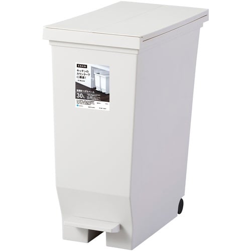 棚下にスッキリおさまる、両開きふたのペダル式ゴミ箱です。 キッチンなどで使いやすい30Lサイズです。 ふたの開口部分が重なるように閉まるのでニオイが漏れにくい形状です。 |