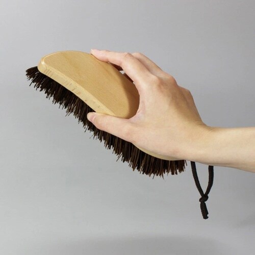 タイルやコンクリートに付着した頑固な汚れをゴシゴシ磨ける掃除ブラシです。 持ち手部分は手に馴染む曲線の形状のため、力を入れやすいです。 吊り下げられる紐付きで、ブラシを変形させずに収納できます。 |