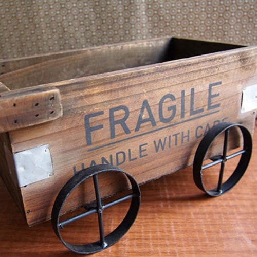 外国でドリンクボトルなどを入れていた木箱をアレンジしたイメージのデザインです。 コーナーのメタルパーツがアクセントになっています。 |