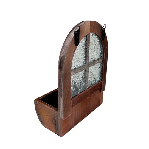 レトロな雰囲気の花柄ガラスがポイントの木製ガーデンプランターです。 多肉植物や観葉植物のガーデンプランターとしてお使いいただけます。 引っ掛け用の紐付きです。 |