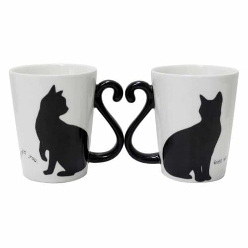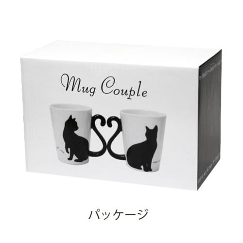 黒猫のシルエットが素敵なマグカップです。 シックな黒色の持ち手は2つ合わせると、ハートになります。 結婚祝いや記念日の祝いなど、新しい門出を祝うプレゼントにぴったりです。 |