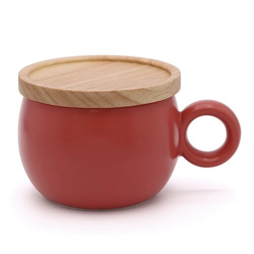 マグカップ フタ付き 280ml potoマグ oマグ コップ 磁器 天然木 レッド ※3個以上から注文可能(販売価格は1個単位の価格)