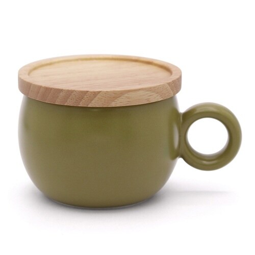 マグカップ フタ付き 280ml potoマグ oマグ コップ 磁器 天然木 グリーン ※3個以上から注文可能(販売価格は1個単位の価格)