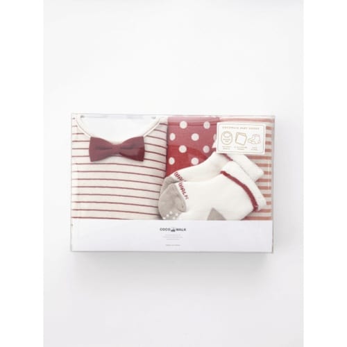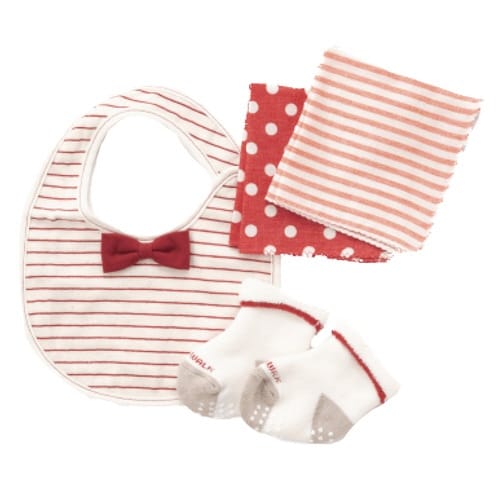 ギフトセット ソックスギフトBOX リボンボーダー スタイ ハンカチ 2枚 靴下 日本製 レッド