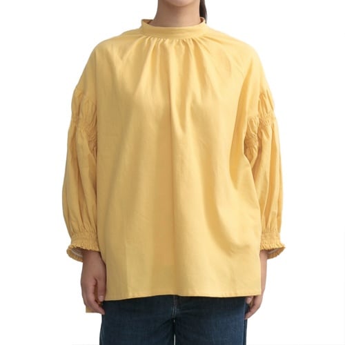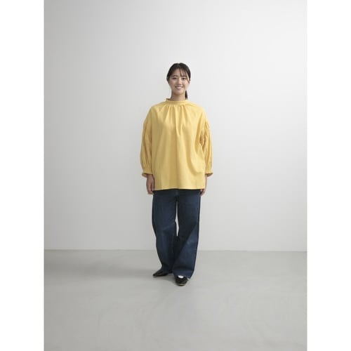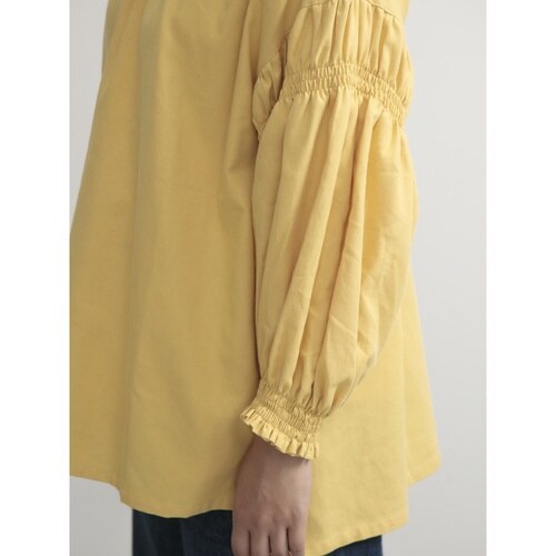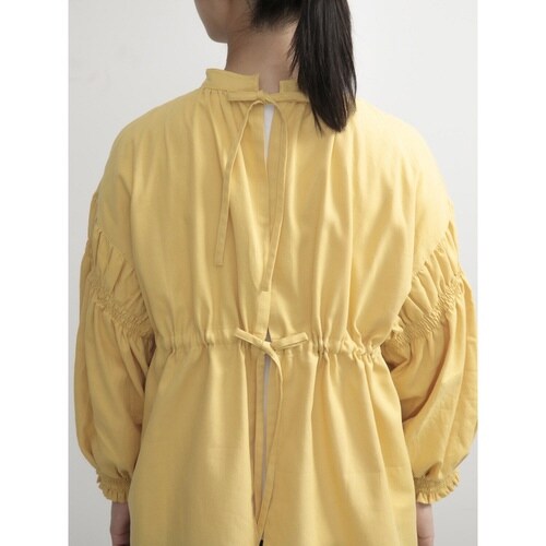 エプロン 無地 袖シャーリング割烹着 COCOWALK イエロー
