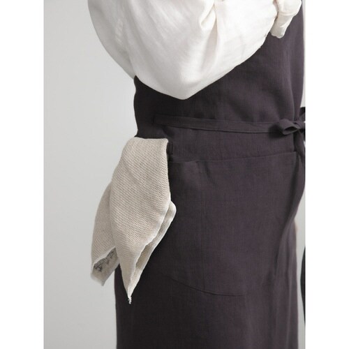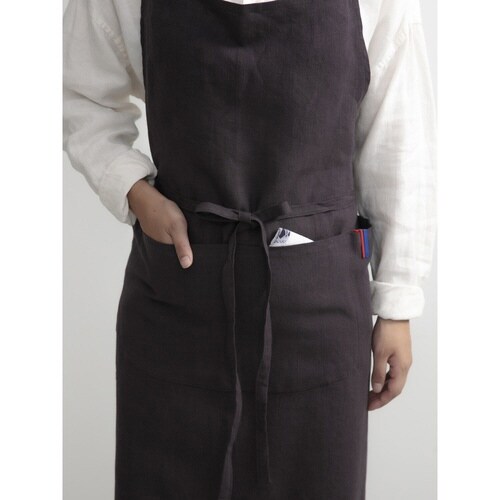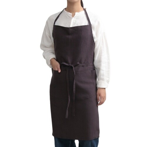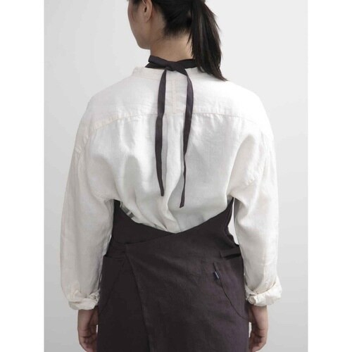 ソフトでふっくらとした手触りが心地よい、リネン100%のラップエプロンです。 バックから巻き付けてウエストでキュッと絞って着られるラップタイプです。 |