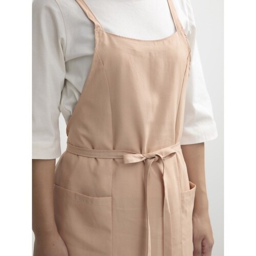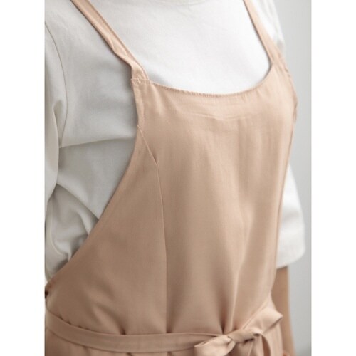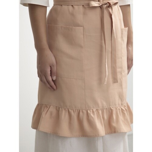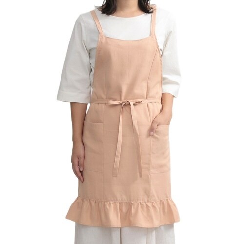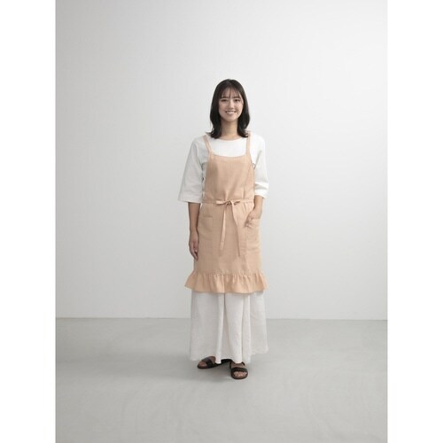 気分を上げてくれる華やかな裾フリルエプロンです。 環境い優しいエコ製法で作られたテンセル混素材です。 |
