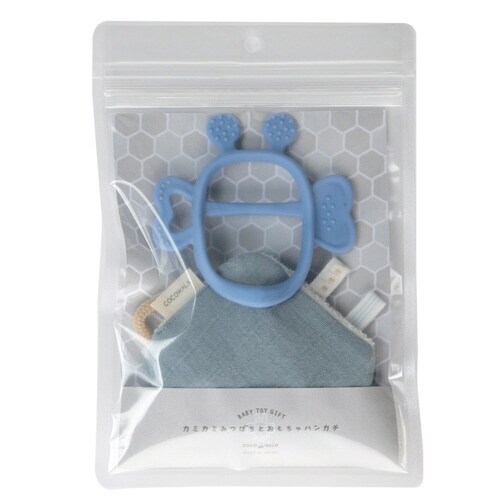ベビートイ ハンカチ セット カミカミみつばち おもちゃハンカチ やさしいガーゼ サックス ※2個以上から注文可能(販売価格は1個単位の価格)