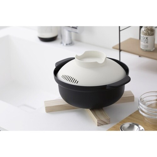 &NE nikii レンジポット Recopo 電子レンジ鍋 ブラック ※3個以上から注文可能(販売価格は1個単位の価格)