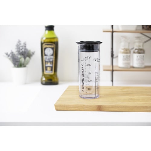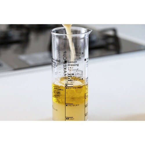 お料理が楽しくなるドレッシングメーカーカップです。 目盛りに合わせて調味料を下から順に加えるだけで、誰でも簡単にドレッシングを作ることができます。 |