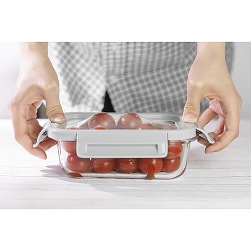 &NE nikii 保存容器 650ml 耐熱ガラス保存容器 伸びるシリコン蓋 グレー ※2個以上から注文可能(販売価格は1個単位の価格)