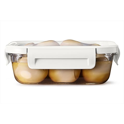 はみ出してしまったお料理を優しく包み込みしっかり密閉してくれる便利な伸びるシリコン蓋の保存容器です。 ガラス製の容器は酸や塩分に強く、食べ物のにおい移りや色移りが少ないので永くお使いいただけます。 |