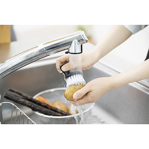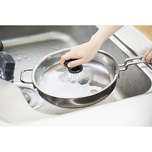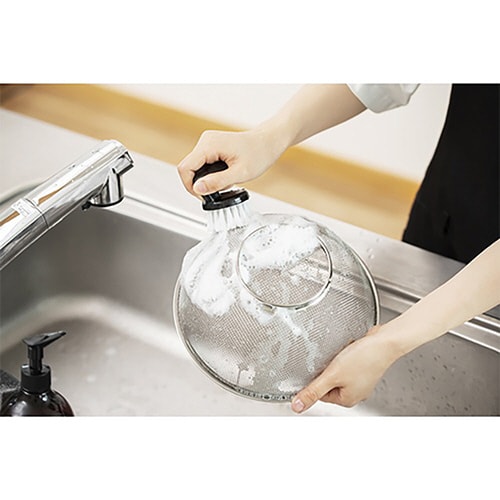 コシの強いポリプロピレンの毛が、まな板やザルの網目に詰まった汚れをしっかりかき落します。 握りやすく、力を入れやすい構造のグリップは手や爪にも優しいです。