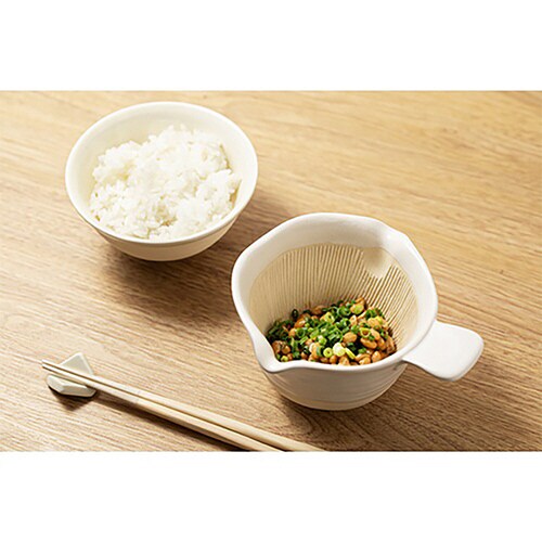 内側の細かい溝が納豆を混ぜるときに空気を含ませて、ふわっと粘りのある質感の納豆が出来上がります。 納豆2パック分が入る大きさです。 薬味を入れてもこぼれることなく混ぜることができます。 |