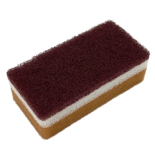 モノプレミアム台所スポンジ、ハードタイプです。 3層構造で泡立ち・水切れのよいスポンジです。 不織布面は研磨剤を含んでおり、頑固な汚れもしっかり落とせます。 |