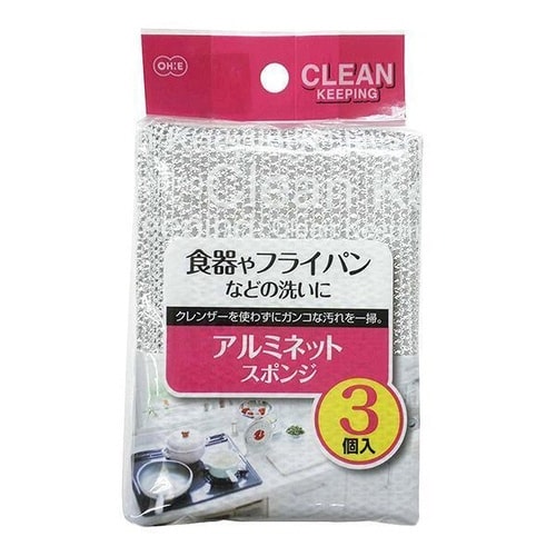 ガンコな汚れを一掃できるアルミネットスポンジ3個入りです。 フィルム状の糸をネットに加工して使用。 フィルムのエッジのかき落とし効果で、クレンザーを使わずに気になる汚れを落とします。 |