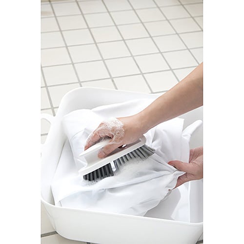 襟元や袖を洗えるアイロン型の洗濯ブラシです。 台の部分は、ブラシ全体を持ちやすく、力を入れやすい形状になっています。 |