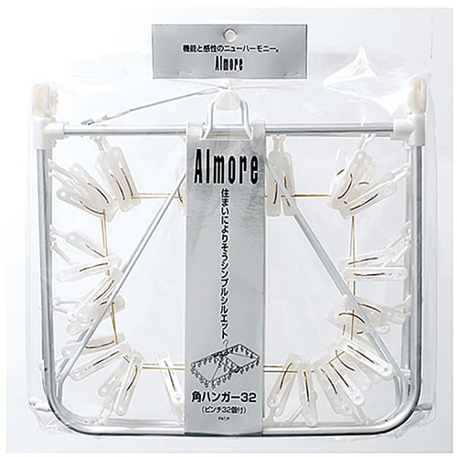 シンプルな見た目で清潔感のある角ハンガーです。 ピンチは32個付いています。 洗濯物がたくさん干せる便利なサイズです。 アルミ製で軽くて汚れがつきにくいです。 |