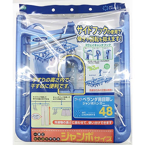 ピンチが48個付いたベランダ用の目隠しハンガーです。 洗濯物が多い時や大家族にピッタリの大きいサイズです。 ボトムス、タオル、靴下など様々なものが干せて便利です。 |