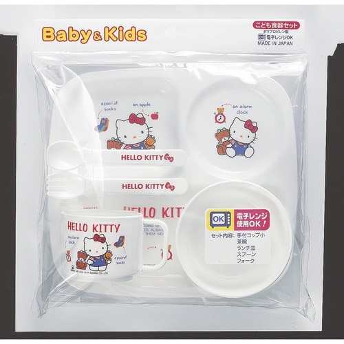 ハローキティがデザインされた食器セットです。 電子レンジに対応しています。 プラスチック製で軽く割れにくいので小さなお子さまに最適です。 安心の日本製です。 |