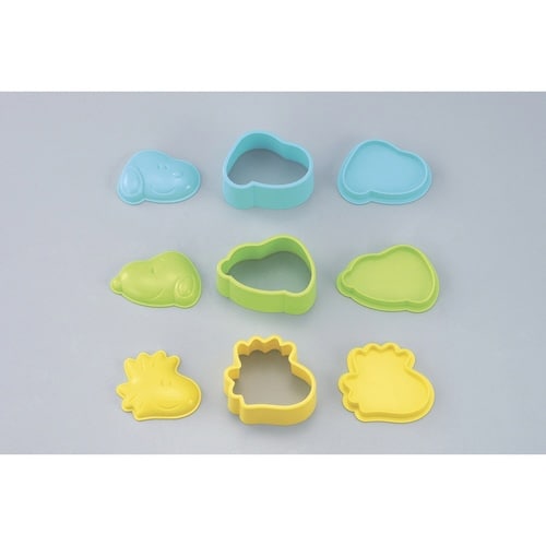 スヌーピーたちのおにぎりが作れる、かわいいおにぎり型が登場しました。 ご飯を型にはめて押し出すだけで、気軽にキャラクター弁当が楽しめる優れものです。 |