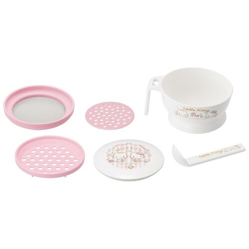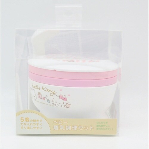 ハローキティの離乳調理セット コンパクトに収納可能 電子レンジでの調理が可能 お子さまの成長に合わせて |