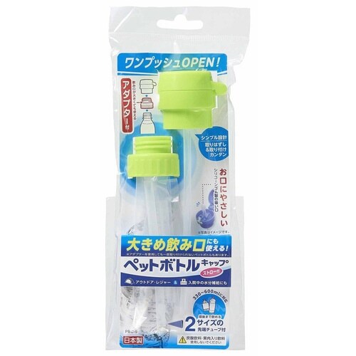 アダプタ付きで大きめの飲み口にも対応できるペットボトルキャップです。 ワンプッシュでストローが飛び出すので、手軽に水分補給ができます。 330mlから600mlのペットボトルに対応できます。 |