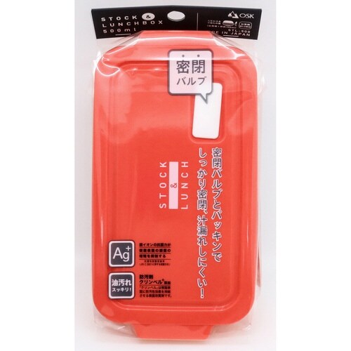 お弁当箱 1段 500ml 抗菌 STOCK&LUNCH BOX オレンジ ※3個以上から注文可能(販売価格は1個単位の価格)