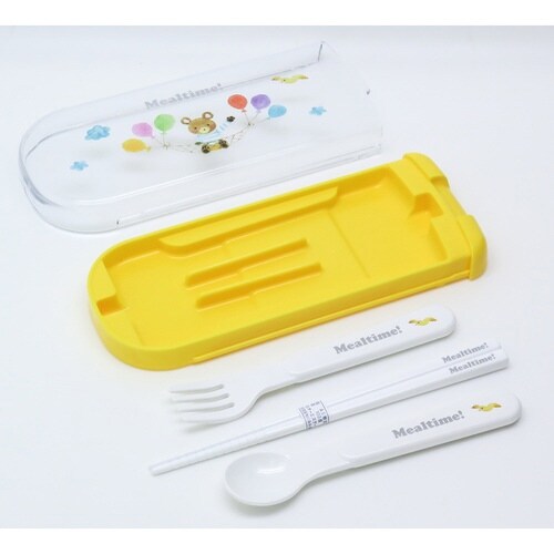 ミールタイムのお箸・フォーク・スプーン・ケースのセットです。 指を掛けてスライドできるケースなので、小さなお子様でも簡単に開閉することができます。 安心の日本製です。 食洗機対応でお手入れ簡単です。 |
