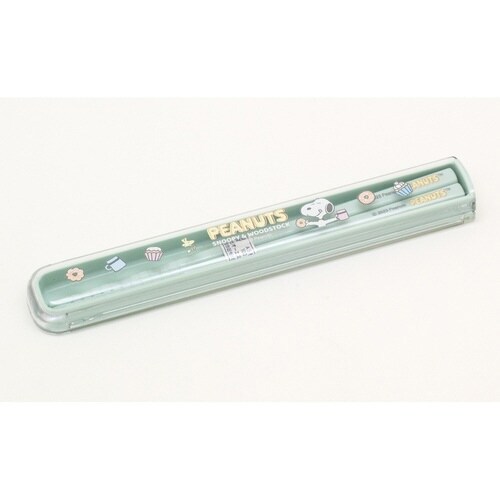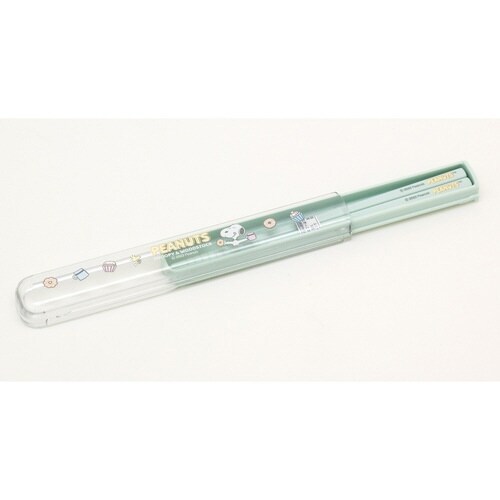 スヌーピーの開けやすいスライド式箸箱と箸のセットです。 銀イオンの抗菌力で樹脂表面の細菌の増殖を抑制するバクテキラーを配合しています。(抗菌加工部分:箸箱・箸) |