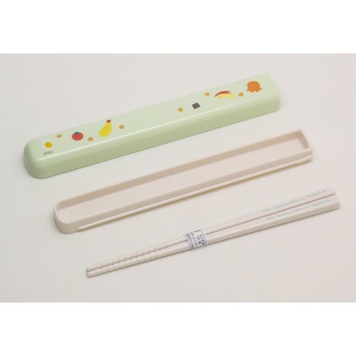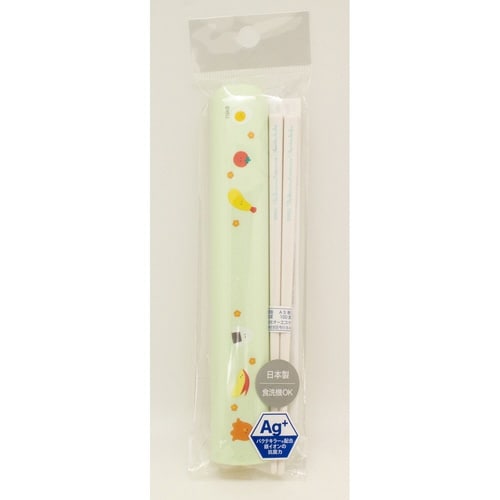 開けやすいスライド式箸箱とお箸のセットです。 銀イオンの抗菌力で樹脂表面の細菌の増殖を抑制するバクテキラーを配合しています。(抗菌加工部分:箸箱・お箸) |