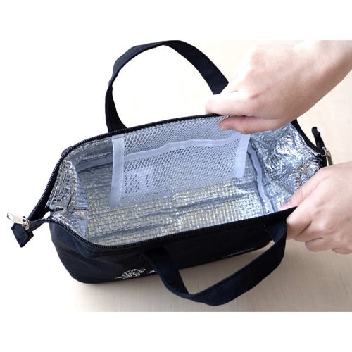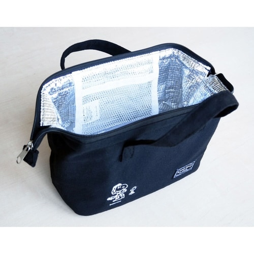 スヌーピーのがま口ランチバッグです。 開け口が広く、お弁当箱などの出し入れがスムーズにできます。 内側はアルミ蒸着素材で保冷効果があります。 保冷剤が入るメッシュポケット付きです。 |