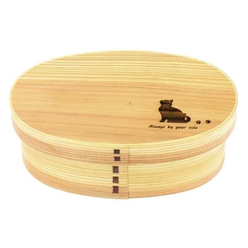 かわいいプリントが蓋にデザインされている曲げわっぱ弁当箱です。 杉材本来の色を貴重としたウレタン塗装が施されています。 内容量は400mlです。 |