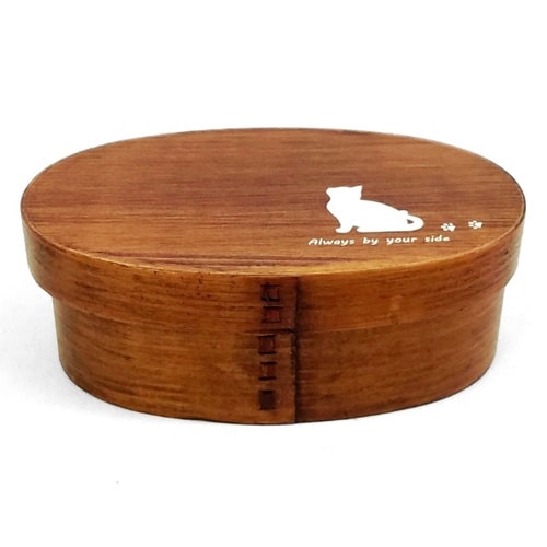 かわいいプリントが蓋にデザインされている曲げわっぱ弁当箱です。 木目に深みが増す漆塗装が施されています。 内容量は400mlです。 |