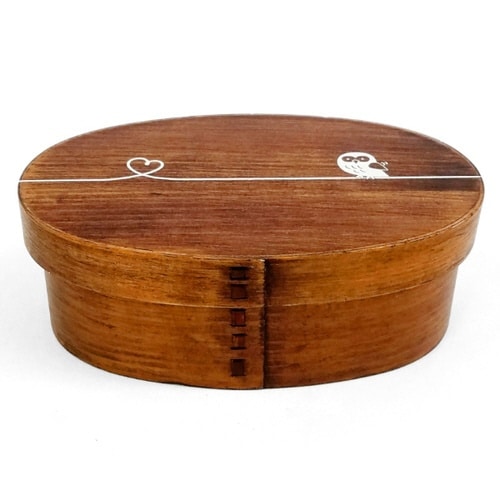 かのりゅう お弁当箱 曲げわっぱ 400ml 漆塗 シルクデザイン 結び 動物 フクロウ 9287-8853