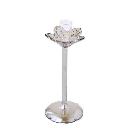 花をモチーフにしたガラス製のキャンドルスタンドSサイズです。 テーパーキャンドルやスパイラルキャンドルなどをセットして、空間をクラシカルに演出します。 |
