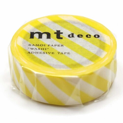 マスキングテープ ストライプ 幅15mm×7m mt DECO レモン ※15個以上から注文可能(販売価格は1個単位の価格)