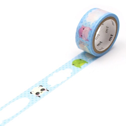 手でちぎって、貼って、はがせるmt(エムティー)シリーズのマスキングテープです。 人気の駄菓子「うんチョコ」の動物たちにふきだしが付いたデザインが登場しました。 |