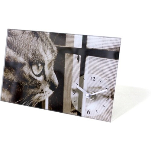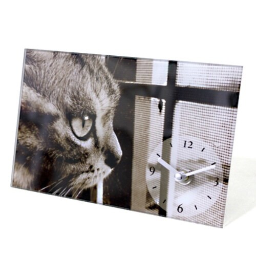 置き時計 ガラスアートピクチャー キャット B 時計 アナログ ※3個以上から注文可能(販売価格は1個単位の価格)