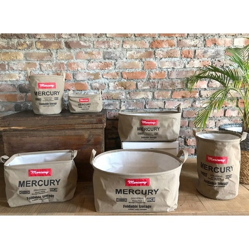 マーキュリーの定番、キャンバスシリーズのバケツSサイズです。 落ち着いたアースカラーでインダストリアルな雰囲気がおしゃれです。 アメリカンスタイルのデザインは置いておくだけで様になります。 |