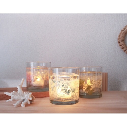 キャンドルホルダー ジェル ハーバリウム ガラス ピンク ※2個以上から注文可能(販売価格は1個単位の価格)