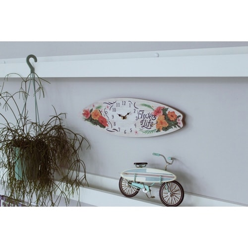 置き時計 アナログ おしゃれ サーフボードクロック フラワー リビング ※2個以上から注文可能(販売価格は1個単位の価格)
