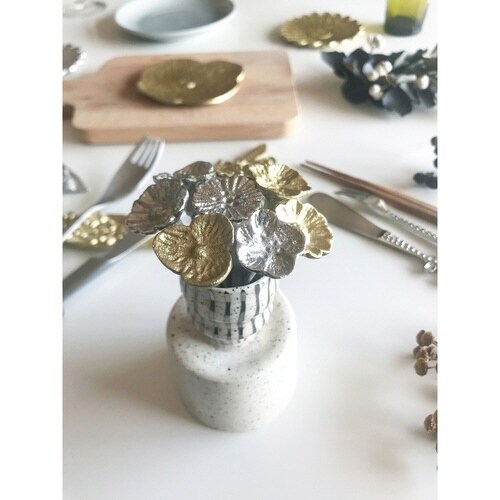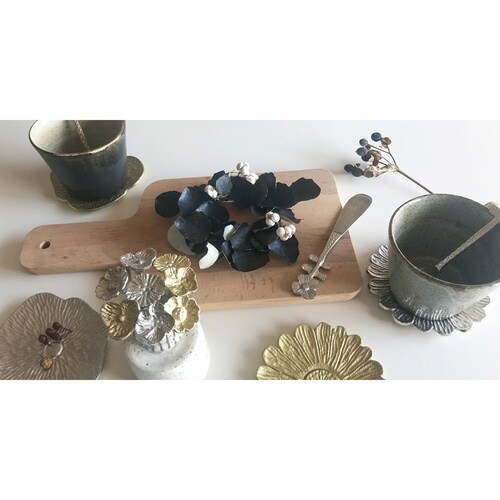 リンゴの花をモチーフにしたフルーツピックです。 手作業で加工されているのでぬくもりを感じられるデザインです。 アンティーク風で上品で落ち着いた雰囲気を演出します。 |
