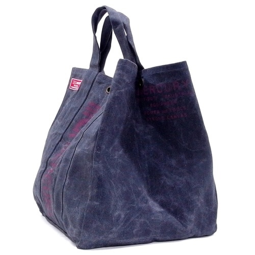 ロウ引きのコットンでできた大判バッグ 便利なログキャリーとして 大きなマチ ハンドル付き |