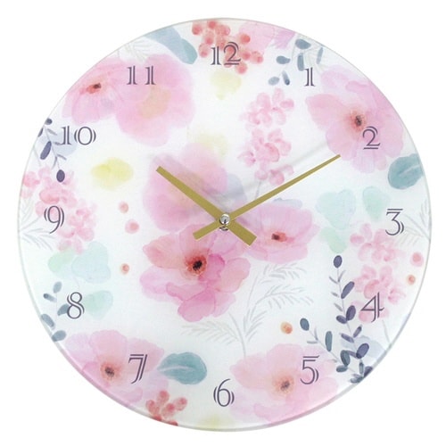 透明感が美しいガラス製の壁掛け時計です。 植物を繊細な水彩で描いた透明感のある美しさが魅力です。 家族みんなが集まるリビングにおすすめの直径30cmです。 |