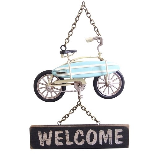 サーフボード付きビーチクルーザーがWELCOMEサインボードになりました。 玄関やお部屋のドアに飾っちゃいましょう。 玄関やお部屋のドアに気軽に飾れるサイズ感です。 |